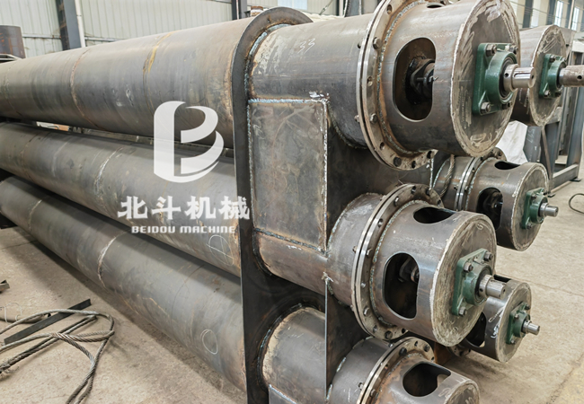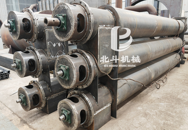 冷炭出料機采用夾層水套設計,內(nèi)外筒體夾層為冷卻水通道,內(nèi)筒采用螺旋推進物料,提高了冷卻效果,降低了成品炭溫度。通過夾層冷卻水不斷帶走內(nèi)筒物料的熱量,使高溫的成品炭冷卻到常溫。